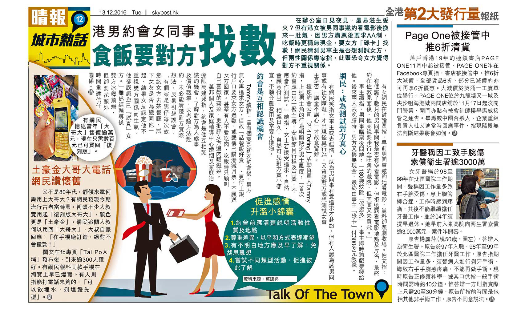 有女同事應邀男同事的約會去看電影及晚膳,對方卻稱沒現金找數,有網民猜測是考驗。婚姻及家庭治療師萬建邦指約會是互相認識的機會,忌以考驗的方法赴約。