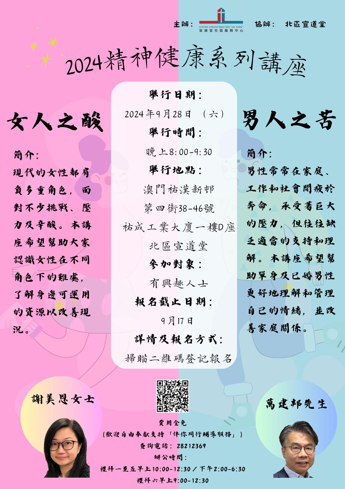 2024精神健康系列講座 - 「女人之酸」「男人之苦」