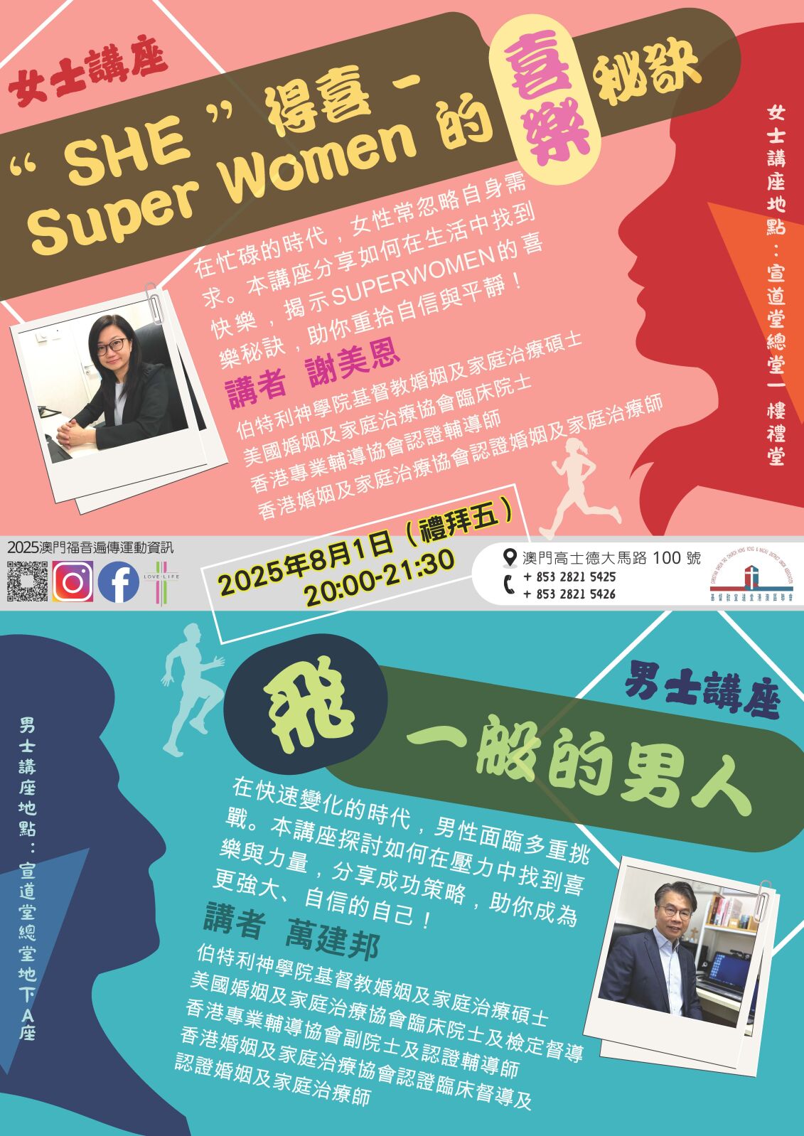 2025澳門福音遍傳運動 - 「"SHE"得喜 - Super Women的喜樂秘訣」「飛一般的男人」